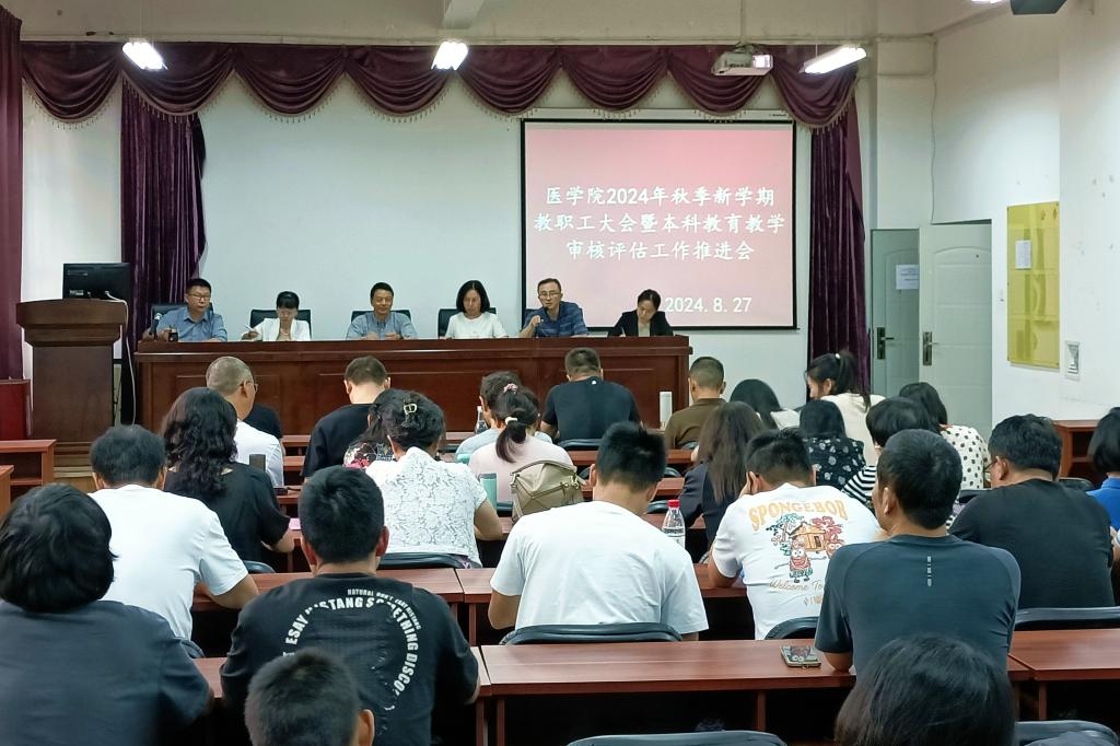 8月27日上午,威廉希尔williamhill中文在医学楼-2103会议室召开2024年秋季新学期教职工大会暨本科公司产品审核评估工作推进会。会议由张培宏书记主持,威廉希尔williamhill中文全体教职工参加了会议。