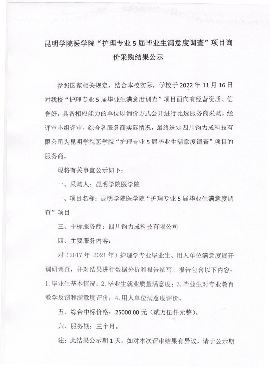 威廉希尔williamhill中文《护理学专业5届毕业生满意度调查》项目询价采购结果公示