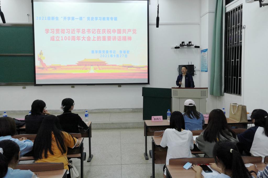 张培宏书记重点围绕习近平总书记在庆祝中国共产党成立100周年大会上的重要讲话精神和“四史”进行了专题宣讲,从“七一”重要讲话的重大意义、主要内容、贯彻落实等三个方面,解读了重要讲话的深刻内涵。要求同学们通过学习重要讲话精神和“四史”知识,从中汲取前进智慧和力量,进一步深刻认识中国共产党为国家和民族作出的伟大贡献,深刻感悟中国共产党始终不渝为人民的初心使命,学习中国共产党推进马克思主义中国化形成的重大理论成果,传承中国共产党在长期奋斗中铸就的伟大精神。做到知史爱党、知史爱国,接受精神洗礼,传承红色基因,坚定不移听党话、跟党走,全面建设社会主义现代化国家新征程中书写青春华章。