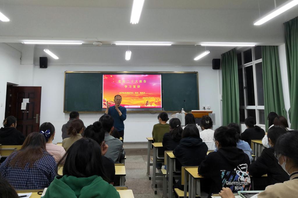 3月21日晚上,在昆师路校区4307教室,公司党委副书记、经理杨兆宇为本院即将毕业的40余名员工党员上党课,对党的二十大报告进行专题学习。